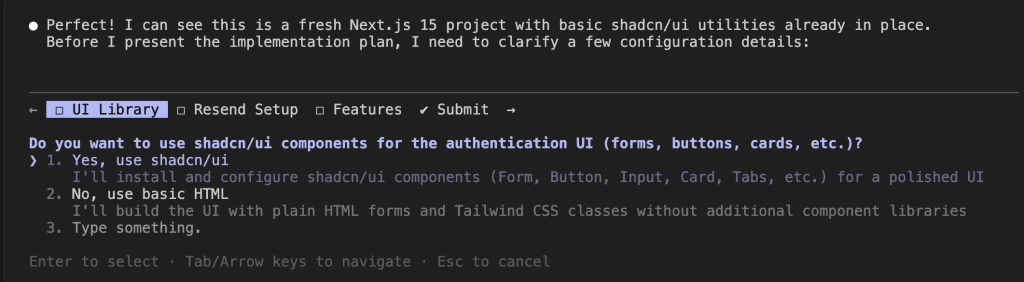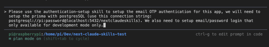 I tell Claude: “Please use the authentication-setup skill to setup the email OTP authentication for this app.”
