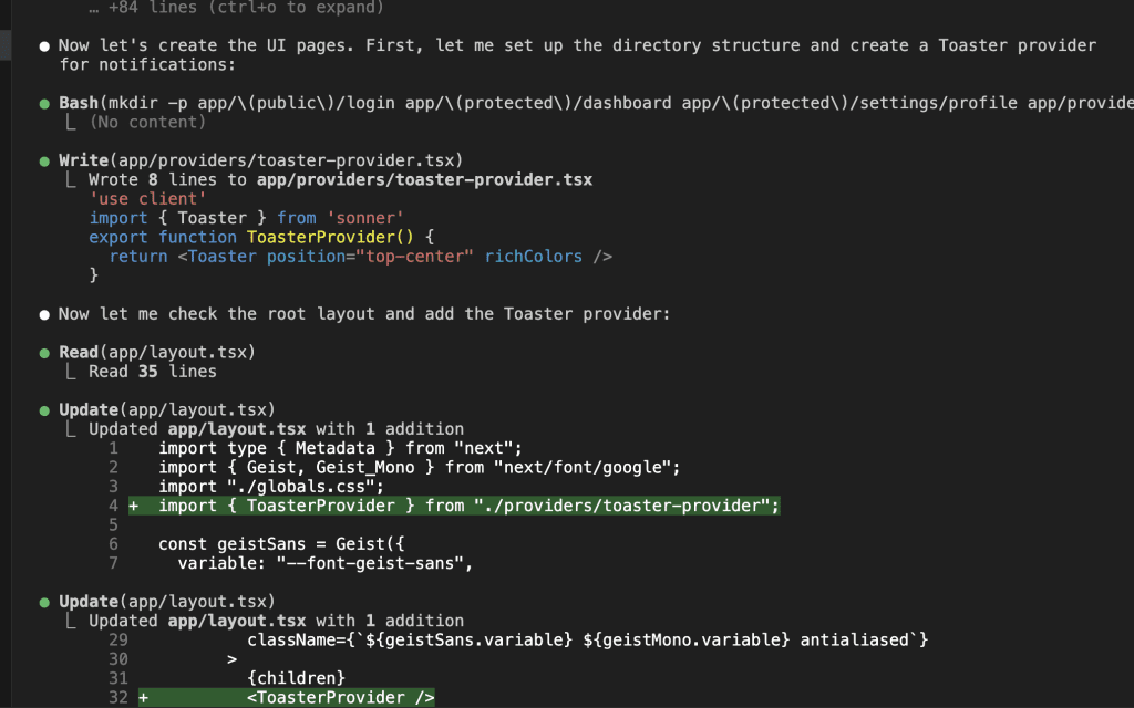 Protected layouts, profile pages, dashboard – all following the same patterns.