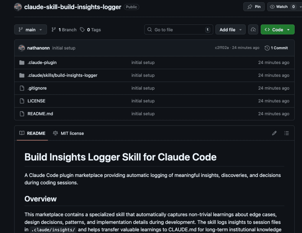 GitHub Repo: https://github.com/nathanonn/claude-skill-build-insights-logger