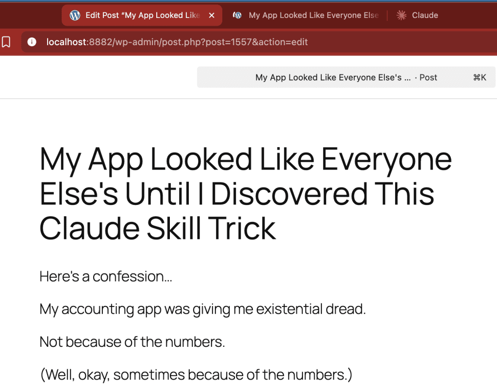 Here’s what fascinates me—Claude Code used WP-CLI to test in real-time: